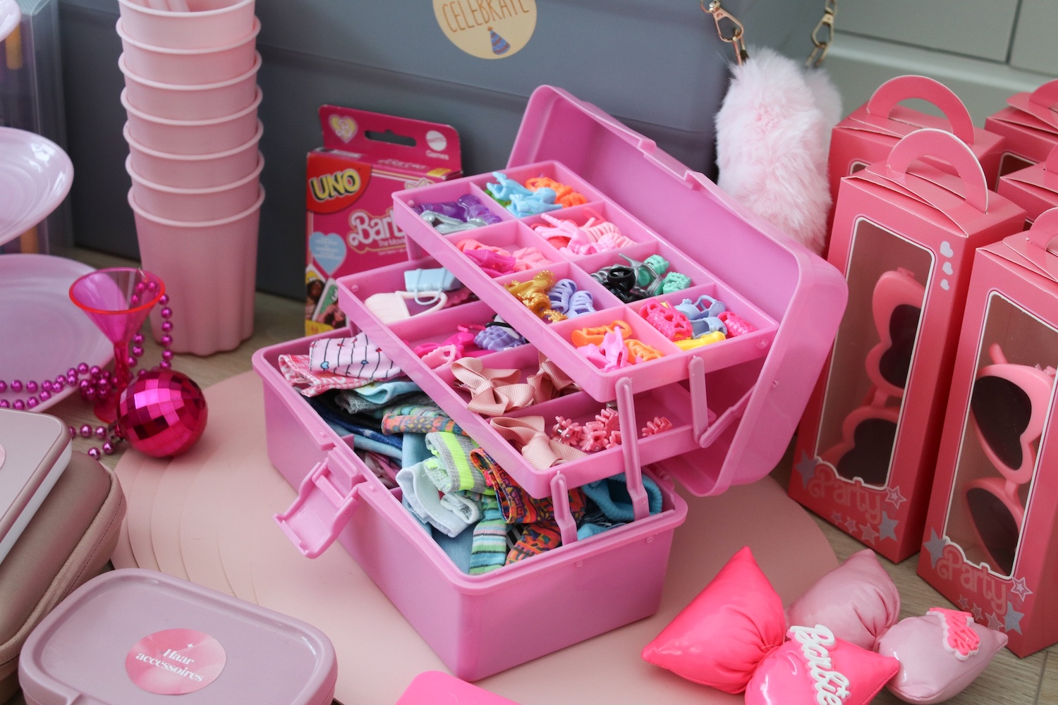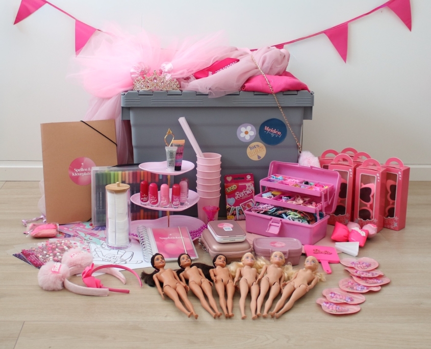 Een sprankelend Barbie themafeestje vol creativiteit, glamour en speelplezier. Van knutselactiviteiten zoals een armband maken en zonnebril versieren tot de Barbie Styling Studio. De meiden worden echte Barbies in de nagel salon en tijdens de glamour fotoshoot met accessoires en glitter. Kleurplaten, een zoek-spel en Barbie Uno zorgen voor afwisseling en plezier. Alles is tot in detail uitgewerkt voor een onvergetelijk droomfeestje.